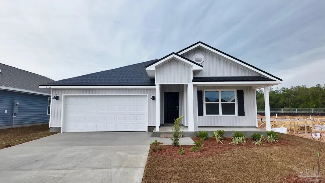 Rivers Cove Community features a community pool, nice community center and playground. The Cali model, one of our most sought-after designs, offers a fantastic open layout for relaxed living. Offers 4 bedrooms, 2 bathrooms, a covered back patio, 2-car garage, and the 'Smart Home Connect' System with various convenient Smart Home devices. The well-appointed kitchen includes stainless steel appliances, a smooth-top range, built-in microwave, quiet dishwasher, corner pantry, island bar, eye-catching wood-look flooring, and plush carpet in the bedrooms. Bedroom 1 and the adjoining beautiful bath boast a large walk-in closet; double vanity sinks and more. Fabric Hurricane window and door protection is also included. Enjoy the stylish curb appeal in this rapidly growing area with easy access to the interstate.