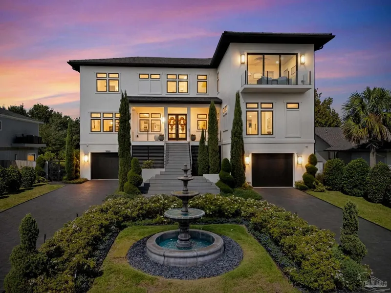 Experience modern coastal elegance in this architecturally stunning Brian Spencer home, ideally located in the prestigious Santa Rosa Shores community of Gulf Breeze. Built in 2021 with ICF construction, this residence was designed for strength, efficiency, and enduring beauty — blending timeless craftsmanship with contemporary design. This 5-bedroom, 5-bath home offers expansive, light-filled spaces with soaring ceilings, designer lighting, and exquisite millwork throughout. The chef’s kitchen is a showpiece featuring Wolf appliances, a built-in coffee system, quartz countertops, custom cabinetry, and a generous walk-in pantry — seamlessly connected to the open-concept living and dining areas, perfect for both entertaining and everyday living. A private elevator provides access to all levels, while the primary suite offers a priceless views and a serene retreat with a spa-inspired bat...