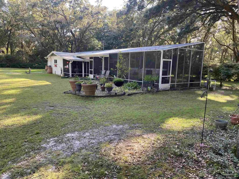 Nestled under stately oaks and natural surroundings, this 3-bedroom, 2-bath home offers more than just a place to call home ... It’s a place to really live. With over 2 acres of land, large oaks, a pond with freshwater fish, a 25’ x 40’ workshop, 3 large canopies for car and equipment storage, a large screened-in porch, 16’ x 50’ in size, offering plenty of room for entertainment and activities, you will likely spend more time outside than in. There are 26 acres of undeveloped land that border the back of the property. The owners report that along with other wildlife, deer most often visit their backyard pond. This home was fully renovated in 2017. Although some original elements remain, most of the home is 'like new'. Both bathrooms have fully tiled showers and the primary bedroom features an oversized closet and office or studio area. This home also has an invisible fence that keeps their dogs within the borders of the property. While the property feels secluded and is mostly quiet, Bennett C Russell Elementary and Avalon Middle Schools are within 5 minutes, you are less than 10 minutes from a boat ramp that accesses Escambia River and Bay, and you can be in Pensacola, Milton or Pace in less than 15 minutes.
