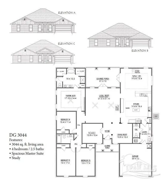 Welcome to Parkland Place! Offering an array of amenities designed for an active and enjoyable lifestyle, including a Community Center, Swimming Pool, Splash Pad, Tennis Courts, Pickleball Courts, Playground, Dog Park, Nature Trails, and more. This must-see home is currently under construction, with an estimated completion date of late Summer 2026. This breathtaking 3044 sq. ft. home features four spacious bedrooms and 2.5 bathrooms. The layout of this home is designed to provide ample space for comfortable living. Entering the home from a beautiful covered front porch, you are greeted with a welcoming foyer. A study with French doors and a formal dining room is off the foyer. The living room and family room have double doors that lead to a large, covered lanai for outdoor activities and gatherings. This dream kitchen features custom-made Shoji White Shaker cabinets, timeless quartz countertops, a central island, a breakfast bar peninsula, a stainless steel radiant-top range, a mounted microwave, a dishwasher, and a pantry. The kitchen opens into a large family room, creating a perfect space for entertaining guests and spending quality time with family. The half bath is conveniently located off the laundry room with a beautiful quartz countertop. This home has gorgeous LVP flooring in the main living areas for easy care. The spacious owner's suite features a box ceiling with a ceiling fan, making it a true retreat. The owner's bath has two large walk-in closets, a garden tub with a window, a separate tiled shower, a double vanity with quartz countertops, and a linen closet. The additional bedrooms are generously sized and share a full bathroom with quartz countertops. Modern touches include stainless steel appliances, black lighting package, and updated black hardware. This all-electric home comes with a fully sodded yard, a sprinkler system, a garage door opener, and many other features. *This neighborhood is part of the Parkland Place Community Dev