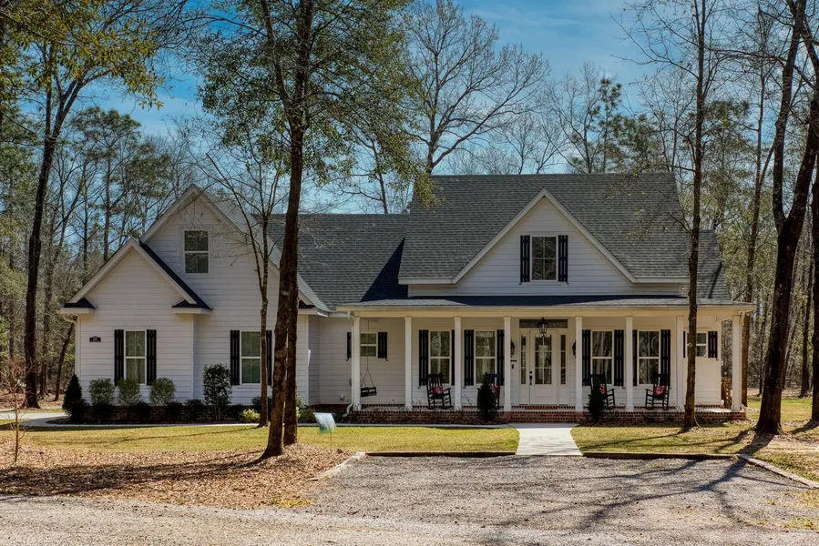 Jay, FL - A hunter's paradise. 18.09 acres full of wildlife along with a hunting food plot with shooting house, 1 mile walking/ATV trail, walk-in pump house, both large oaks and pine throughout, and stunning 2115 sqft home. The special features extend to the 2,760 sf foot barn with 16 foot high lean to on both sides, 50 amp RV hookups, LED lighting, and outlets every 6 feet in shop/barn. This is the ultimate man cave/she shed or bring all your toys, boats, RV, etc. The large front porch welcomes you with a hanging swing. Glass triple transom doors are inviting and let in plenty of natural light. Once inside youll love the open concept that lets you look all the way out to the oversized back porch with four ceiling fans. 3829 sqft under roof includes a chef's kitchen with gas range, oversized island, walk-in pantry, stainless appliances, granite, pendant lights, and adjoining eating area....