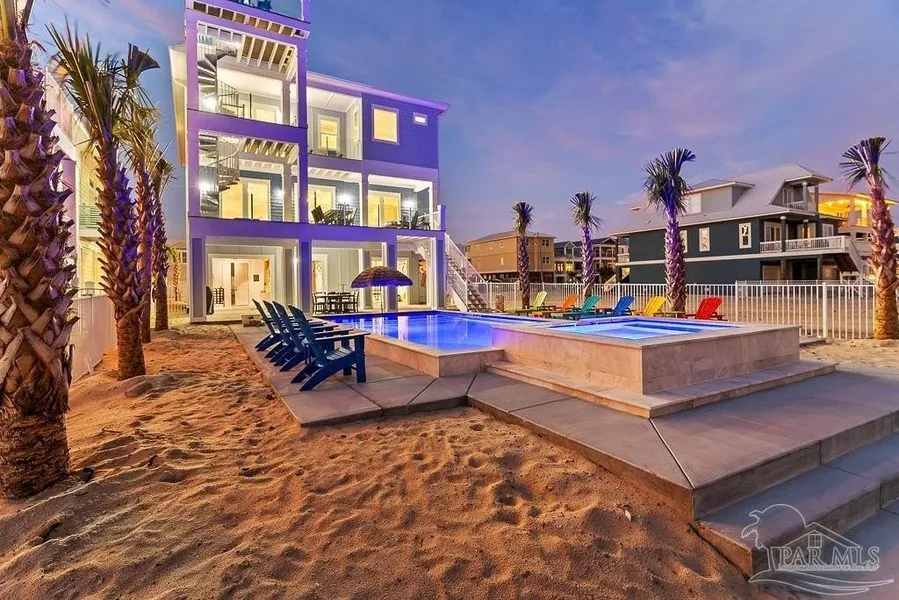 FULLY FURNISHED -. Luxurious Waterfront Retreat . Welcome to paradise at Navarre Beach, Florida! This stunning 5-bedroom, 6-bathroom home offers the ultimate in luxury coastal living. Situated directly on the pristine shores of Navarre Beach, this property is a rare gem offering Breathtaking views and the emerald waters of the Gulf Coast And Water front access to the sound waters of the intercoastal Waterway . Brand-new construction with impeccable attention to detail - Tiki Bar- Expansive open-concept living areas flooded with natural light-Modern gourmet kitchen featuring top-of-the-line appliances and custom cabinetry-Five spacious bedrooms, each with its own EnSite bathroom for maximum comfort and privacy . Luxurious master suite with a private balcony overlooking the Gulf of America & The treasured National Seashores -Impressive outdoor living spaces including multiple balconies an...