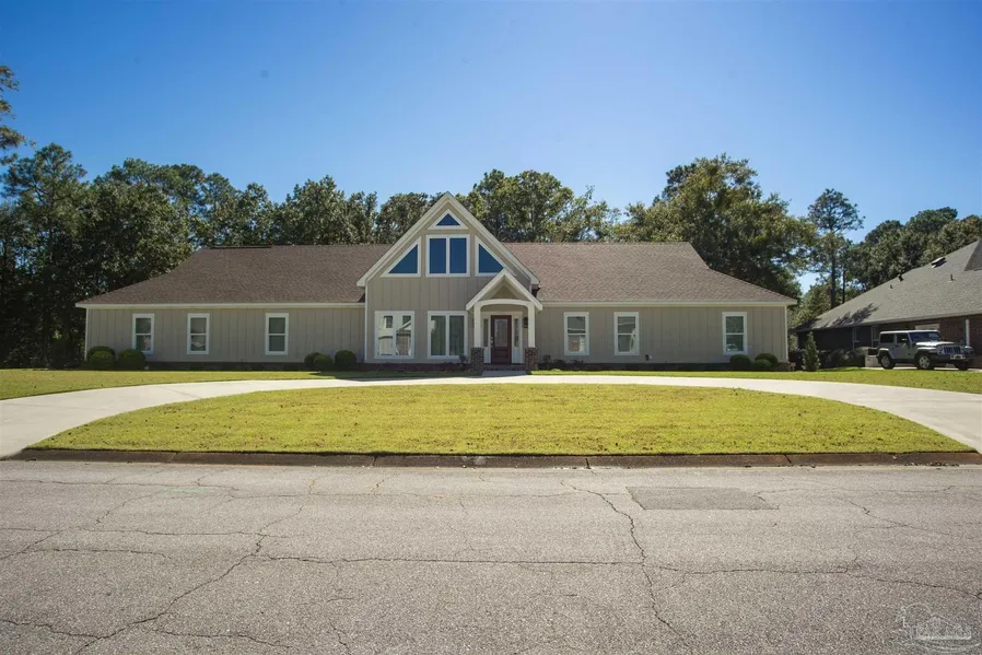 Fabulous custom build on a double lot in the Moors. The 3376 square foot house was built with 2x6 construction with foam insulation through out. The 21 foot tall great room features Timber frame hybrid construction (no nails or screws) as well as the dining room. Over 300 lineal feet of lighting in the great room, custom Alder cabinetry through out the house. Lighted buffet. The kitchen features 2 pantries, double ovens, separate ice maker, gas cook top and quartz counter tops. Under counter lighting in the baths with quartz counters. 2 tankless water heaters, 2 HVAC systems with remote control thermostats. High impact doors and windows and whole house generator. Security system. Incredible separate 396 sf wood working shop is heated and cooled, has all equipment, has a dust collector in the attic and the compressor is located in the garage to eliminate noise. Sprinkler with well and pump, storage barn. This property has waterfrontage that leads to Mulat bayou and it is possible to kayak to Mulat Bayou and on to Escambia Bay if you wish. This is a must see dream home.