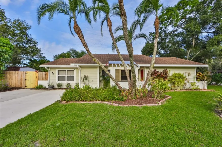 You will be impressed with this beautifully updated home on a fenced corner lot in the popular neighborhood of Lake Sarasota. This home features 3 bed, 2 bath + den + sunroom and screened lanai ! It's an open floor plan with impressive vaulted ceilings and gorgeous wood laminate floors and tile throughout. The kitchen is open to the dining room with granite counters and plenty of counter space. Both baths are tastefully updated and the spacious master bedroom includes a large walk - in closet. Relax and unwind in your backyard garden with gazebo and fire pit surrounded by lush vegetation and mature trees. There is a storage shed in the back yard and plenty of room to park your toys, boat or RV with no deed restrictions. This homesite is so private and peaceful and in a great location convenient to shopping, schools and beaches.