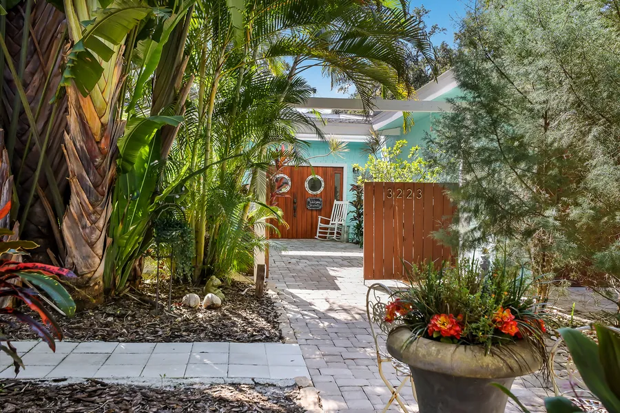 On a rare freshwater spring-fed pond filled with wildlife, you'll enjoy over 3,000 square feet of living space with 4 bedrooms, 3.5 baths, a wine room, a very private office, a large family room, a chef insprired kitchen and a car enthusiast's dream 4-car garage. This house offers versatility at every turn. Have a large family in need of plenty of private space? Work from home and need a private office? Need A-rated school district? Have a lot of cars or stuff you need to store? Love outdoor entertaining? Want to moped to Siesta Key Beach? This home has a very lucrative short term rental record - set up perfectly with separate entrances, separate air conditioning, all on the east side of the house. Professionally managed, easy to continue using this home as an investment property if that is something you are looking to have in your home. Located in the coveted Southside school district and close to multiple restaurants, delis, shops, nightclubs, Sarasota Memorial Hospital and a short drive to downtown Sarasota and St. Armands Circle. Recent improvements include a metal roof (2020), exterior painting and Hardie board shingles. Come be inspired by this truly unique masterpiece. Come see for yourself.