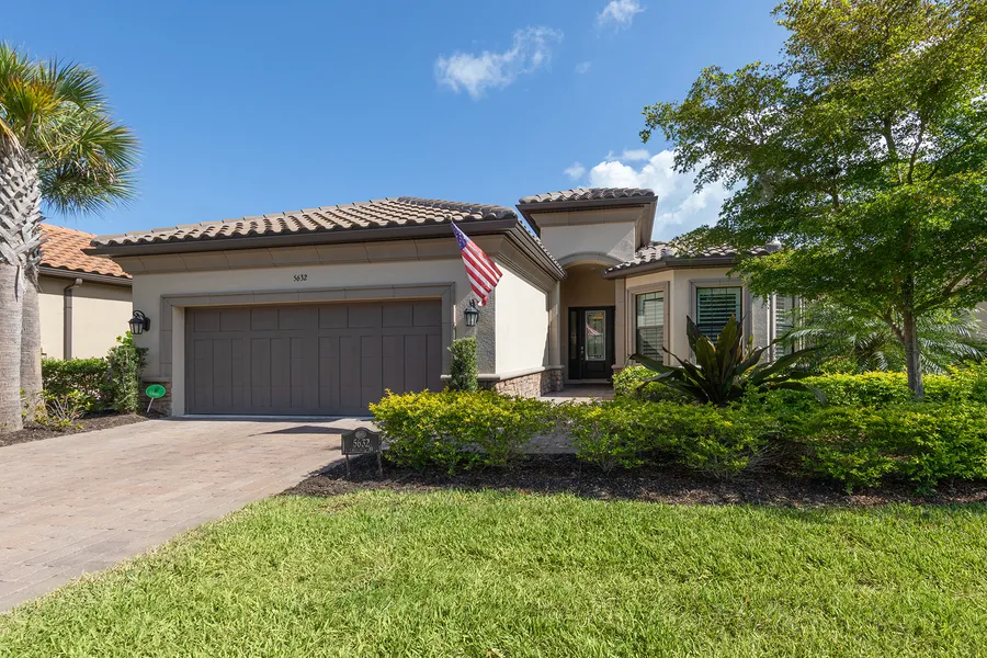 This absolutely beautiful home is better-than-new and loaded with upgrades. With a water view, this home is located in Bellacina by Casey Key, one of Florida's best resort living communities. Custom built by Taylor Morrison. The home features a beautiful gourmet kitchen, 36-inch cooktop gas stove with designer hood, complete with pot filler, kitchen drawer pullouts, soft-close drawers, under-cabinet lighting, large kitchen island with bar sink, wine fridge, storage, electrical outlets, walk-in pantry and two garbage disposals. Outdoor bar and kitchen for entertaining. The huge lanai also features a relaxing sitting area with a fireplace overlooking the beautiful pond. The master bath boasts an oversized shower, bay window, dual sinks and a large California Closet. All fans are remote. Some of the custom features include tray ceilings, recessed lighting, round corner bead throughout, arch...