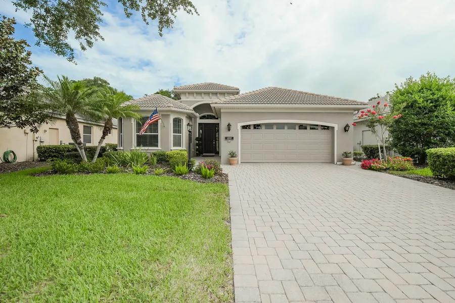 Enchanting Lee Wetherington-built home in the maintenance-free community of Willowbend. Original owners have perfected this popular Opal floor plan that was extended in space including the 21-by-24-foot garage. An inviting home that is elegant, yet casually luxurious with many high-end finishes and features. Stunning curb appeal with a widened paver drive and walkway. Elaborate tray ceilings, 8-foot doorways, tile on diagonal with marble accents, plantation shutters, crown molding, chair railing and a beautiful quartz topped built-in buffet in dining room. The kitchen is the heartbeat of the residence with updated cabinets, quartz counters, natural gas cooking and all appliances in stainless steel, including the wine fridge in the built-out laundry room. The master suite is spacious in design and a separate area has a complete built-in den/office, outfitted with built-in desk, shelving and drawers. There are dual walk-in closets to keep everything orderly and they are equipped with shelving/drawers. Ideally positioned in a private setting, bordering a wooded community greenbelt. Sparkling heated pool, with a picture frame screen enclosure for seamless indoor-outdoor living. High-speed internet, cable television, yard maintenance, as well as a community pool, spa, fitness center, pickleball court and playground are included in the low HOA fees. Fabulously located close to beautiful Gulf beaches, Oscar Scherer State Park, Legacy Trail, Pine View School and numerous waterfront restaurants and tiki bars with a Publix and Kahwa coffee shop within walking distance.