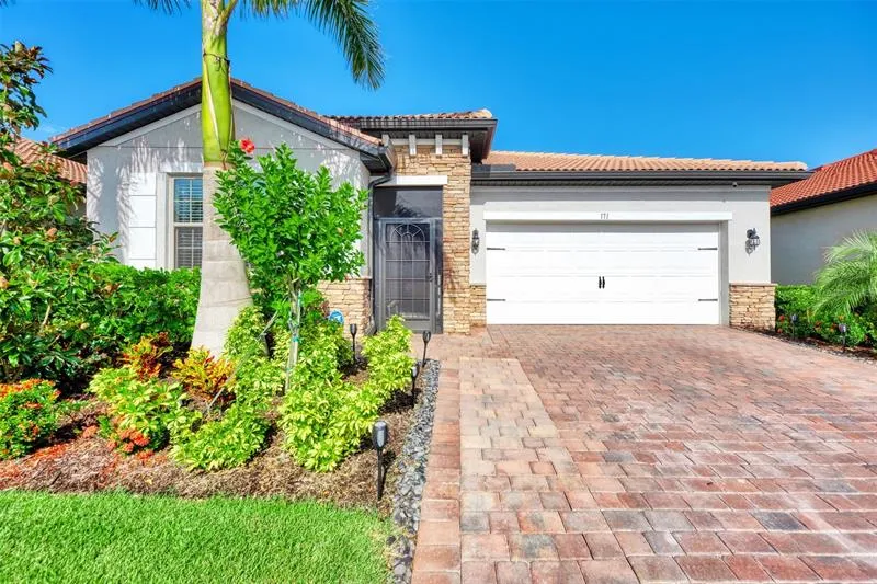 MAJOR PRICE REDUCTION. Relax, escape, and unwind from everyday life in this almost new, fully upgraded, 2BR+Den, pool home on a very private homesite in beautiful Toscana Isles. Located only 6 miles to beautiful Casey Key and Nokomis Beach. The owner installed an outstanding pool, deck, and cage after purchasing from the builder. This oversized (14x28), heated pool is great for either relaxation or swimming laps. The beautiful, extended, travertine pool deck offers room for sunning and entertaining, and decorative LED pool cage lights enhance nighttime pool use. This desirable floor plan has a large open kitchen, expansive great room, and a very spacious Owner's suite. The interior finishes feature light gray 18-inch tile in the main living area and light gray laminate flooring in the bedrooms (no carpets here). The kitchen is finished with quartz countertops, designer backsplash, light valance, 42-inch top cabinets, and pull-outs in the bottom cabinets. The open great room features beautiful decorative wall trim. The spacious owner's suite has two large walk-in closets, decorative wall trim, and an en suite bath with 2 sinks, a vanity, and modern shower. Toscana Isles offers a resort-style community center with amenities geared toward residents who enjoy an active lifestyle. The 8,000sf amenity center includes a resort-style infinity-edge pool, state-of-the-art fitness center, lakefront activities room, screened terrace, tennis, pickle ball, and bocce courts, a large fire pit, and a dog park. Residents enjoy fishing, kayaking, and canoeing on more than 200 acres of interconnected lakes within the community. Toscana Isles is a gated community located within easy access to beautiful Suncoast Beaches (just 10 minutes away), the Legacy Bike Trail, amazing Venice and Sarasota downtowns with rich cultural life, wonderful shopping, and gourmet restaurants. Nearby, Sarasota Memorial Hospital just opened its new Venice campus. Call today for your private showing!