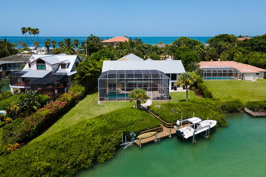 Fabulous Key West-style home, set back from the road with significant updates and a whole-house remodel that was completed in 2017. Featuring a beautiful main home and separate 2014-built carriage house, extended family and guests have wonderful options. The primary residence is open and bright with high ceilings, great room floor plan, three en-suite bedrooms, large kitchen with Bosch appliances and walkout to outdoor dining with views overlooking the pool and Intracoastal Waterway. On the lower level, nonconforming space offers exercise and recreation rooms with a plentiful amount of storage. Above the detached two-car garage, one will find the lovely carriage house with a large living space, eat in kitchen, two additional bedrooms, full bath and spacious outdoor covered terrace. The renovated pool, spa and boat dock with 10,000-pound lift are close to the Venice Jetty and just minutes to the Gulf of Mexico. Private deeded beach access is directly across the street affording the best of beach and bayfront living! Updates and remodel included a galvanized metal roof, HVAC, mechanicals, appliances, flooring, kitchens, baths, impact windows, HardiePlank cement board siding, paver driveway, privacy wall, gated, fenced and so much more. Casey Key is a rare place where commercial development was frozen in time and new construction is reserved for single-family residences. Close to shopping, restaurants, marinas, golf and conveniently located between the towns of Sarasota and Venice, come see why the locals consider Casey Key the jewel of the Gulf Coast's barrier islands.