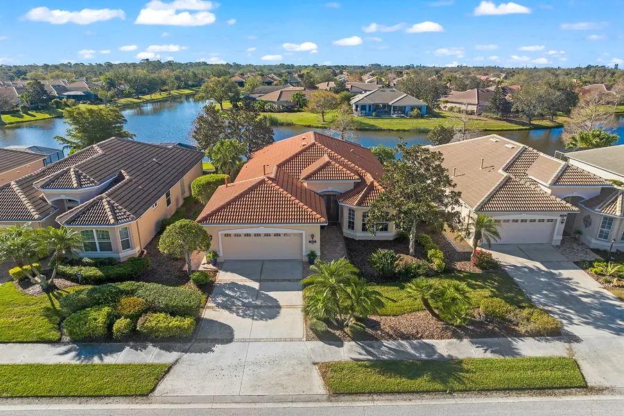 Possibly one of the best southern exposure wide lake views in Willowbend. The intelligent design is as striking as its beauty in this three-bedroom, three-bath + den, Lee Wetherington-built home in this maintenance-free landscape community. Extended Cyprus floor plan with arguably the best use of space, where the bedrooms/baths are in quadrants of the home, centered on a great room. High-speed internet, cable television, yard maintenance, as well as a community pool, spa, fitness center, pickleball court and playground are included in the low HOA fees. Inviting curb appeal with double-door entry, expanded paver walkway, the rear lanai is enlarged with a “picture-frame” bronze screen enclosure for uninterrupted breathtaking views. Wrap yourself in luxury in a sophisticated and modern home with clean lines, boasting high ceilings, beautiful tile and laminate flooring throughout the entire residence. Chef's kitchen with solid wood cabinets, Corian counters, breakfast bar and there is a hook-up for natural gas cooking. Luxurious owner's suite with dual walk-in closets, dual sinks, walk-in shower and tub. Hurricane shutter protection and 65 AMP Generac generator for peace of mind. Ideally located close to beautiful Gulf beaches, Oscar Scherer State Park, Legacy Trail, Pine View School and numerous waterfront restaurants and Tiki bars, with a Publix and Kahwa Coffee shop within a short distance. It's easy to perfect the art of living when you live within a work of art from a location that is serene and harmonious with nature.