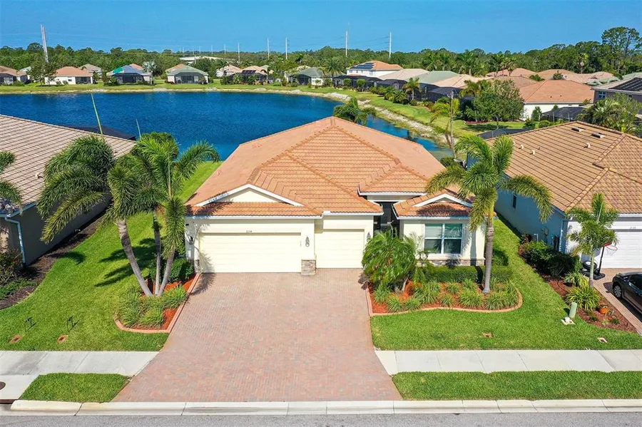 This METICULOUSLY maintained 2013 Lennar, Tivoli floor plan, IS MOVE IN READY. The 2408 sq ft home, is a FOUR bedroom, THREE bath home, THREE CAR GARAGE with upgrades galore. Sit back and enjoy the outdoors with coffee or cocktails and appreciate the sunset views over the water. NEW Lennox air-condition system installed 6/2022. NEW vinyl 5 mm plank light finish flooring installed throughout. The chef-inspired kitchen features a wide layout for easy cooking, a convenient center island, granite countertops with an abundance of storage and a breakfast nook for casual dining. 42 inch rich wood cabinets with custom pull out drawers w/max weight of 100 lbs. Stainless steel appliances, NEW Bosch refrigerator, and dishwasher. Kitchen back splash is imported from Turkey. The stainless steel under mount double sink includes pull out cabinet drawers below. A wraparound bar height counter offers room for added seating for guests. Located off the foyer, the dining room is tucked to the side of the open space kitchen and breakfast nook. The formal dining room is perfect for holidays and special occasions. From the foyer, high ceilings follow throughout the main living areas and Great Room that extends to the covered lanai for outdoor relaxation. The MAIN LIVING AREAS and OWNERS SUITE has CROWN MOLDING. Owners suite spa-like bathroom, with tub, step in shower, and dual sink vanities. The EXTENSIVE WALK IN CLOSET, is the closet of your dreams, includes custom deep finish solid cabinets, drawers, shelves, hanging space, shoe racks, and includes a pull out hamper. Bedroom 2 is currently being used as an office but does have a full bathroom with linen closet. Bedrooms 3 & 4 share a full size bathroom with linen closet. Both bedrooms have custom closet light finish cabinets with drawers, hanging space and shelves. The laundry room is off the kitchen with a NEWER LG high performance top loader WASHER/DRYER. The GARAGE has HIGH PERFORMANCE EPOXY FLOORS. The impact garage doors are INSULATED. Attic ceiling hatch has a pull down ladder for easy access. The covered lanai has been extended for outdoor entertaining. The LANAI has NEW NO SEE UM MESH SCREENS and brick pavers have been recently cleaned and sealed. The exterior and interior of the home have been freshly painted. ALL WINDOWS have NEW NO SEE UM MESH SCREENS. Hurricane shutters/coverings for all openings in the garage. Stoneybrook at Venice is a gated community with resort style amenities and reasonable HOA fees. It boasts a community pool, water park, fitness center, tennis courts, basketball court, in-line skating rink, sand volleyball courts, nature preserve, walking trails, a multipurpose sports field, playground, barbeque area, recreational center and pickle-ball. Stoneybrook at Venice also offers social events to include food truck days, exercise classes, outdoor movies and concerts. Three gated entrances for easy access to the community from any direction. Close proximity to I-75, downtown Historical Venice, with boutique shops and cafes, and our largest attraction, the Gulf of Mexico beaches. Attend an event at Cool It park, the Atlanta Braves spring training facility. Visit downtown Wellen Park for shopping, restaurants, and much more. What are you waiting for? Come make this your home and enjoy the Florida lifestyle this home and community have to offer!