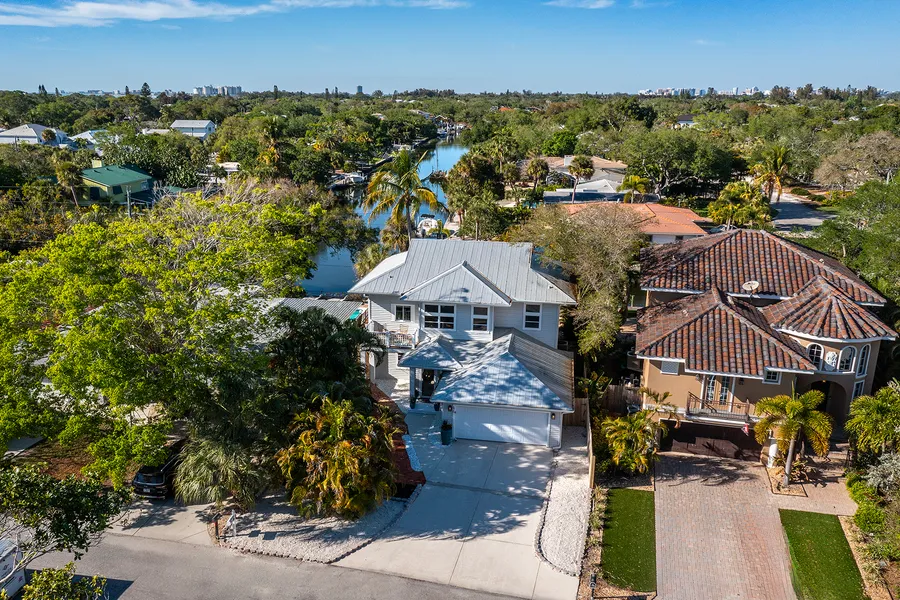 Welcome to your waterfront paradise nestled in the heart of Siesta Key! This meticulously crafted canal-front home offers the ultimate blend of luxury, comfort, and convenience. The open layout includes newly refinished hardwood flooring, crown molding, 9-foot ceilings, recessed lighting, and 2 sets of sliding glass doors that open onto the balcony overlooking the pool and provides coveted long views down the canal. Sunlight dances across the open concept living space, creating an inviting ambiance perfect for both relaxation and entertainment. The gourmet kitchen is a chef's delight, boasting stainless steel appliances, custom 42-inch cabinetry with crown molding, pull-out shelves, and granite countertops. The spacious island serves as the focal point for gatherings with family and friends. Whether you're hosting a casual brunch or a formal dinner party, this kitchen is sure to impress even the most discerning culinary enthusiasts. Flowing seamlessly from the indoor living area is an expansive outdoor oasis, complete with a private dock providing the perfect spot to set sail on endless adventures along the picturesque waterways of Siesta Key. Spend your days soaking up the sun on the spacious patio, fish from the dock, take a refreshing dip in the newly resurfaced sparkling pool and unwind while watching the boats go by and taking in panoramic views of the canal. Retreat to the luxurious master suite, which offers serene water views and a spa-like ensuite bathroom complete with a freestanding vanity, tile shower with frameless surround, transom windows and double closets. Sliding glass doors offer access to the deck so you can savor your morning coffee as you watch the sunrise over the water. The multi-level floor plan provides ample space for guests or family members, complete with a separate sitting area, ensuring everyone has their own slice of paradise and privacy to enjoy the best of island living. Conveniently located just steps from the world-famous beaches of Siesta Key, as well as a plethora of shopping, dining, and entertainment options, this home offers the perfect blend of tranquility and accessibility. A newly refinished pool, spacious sun deck with composite decking, metal roof, new AC and updated plumbing make this a move-in-ready home. Whether you're seeking a full-time residence or a vacation retreat, this canal-front oasis is sure to exceed your every expectation. Don't miss your chance to experience waterfront living at its finest – schedule your private showing today!