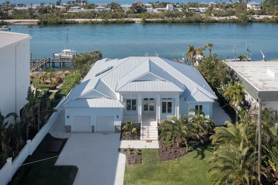 Welcome to the epitome of luxurious living along the serene Intracoastal Waterway. Rarely does a residence of this caliber emerge as new construction, presenting a harmonious blend of West Indies charm on the exterior and cutting-edge modernity within. With over 5,700 total square feet seamlessly integrating indoor, outdoor and garage spaces, this home stands in a league of its own. Picture yourself returning to this private oasis after a day of adventure on the Gulf of Mexico, where the sunset over Casey Key casts a golden glow. The newly crafted IPE wood dock awaits, featuring a 15,000-pound lift and solar lighting. Spend afternoons by the pebble tech, infinity-edge pool, or indulge in an alfresco dining experience by the custom outdoor kitchen. Complete with a gas pizza oven under Pecky Cypress ceilings, this space is a haven for culinary enthusiasts. Catering to avid boaters and car aficionados, this residence boasts more than ample space. Beyond the two-car attached garage, discover a detached air-conditioned haven with lifts for up to six cars spanning 1,500 square feet. No detail was overlooked in the pursuit of perfection, evident in the reclaimed solid cherry wood flooring, Sub-Zero appliances, and quartz countertops adorning the kitchen and baths. Luxury extends to the smallest details, from translucent agate blue semi-precious stone accents to hand-blown Murano lighting. Andersen hurricane-impact windows and CWS sliding glass doors seamlessly connect the main living area to the outdoor oasis. Pocket sliding glass doors ensure a continuous flow, leading to the veranda with an outdoor gas fireplace and large ceiling fan, an embodiment of Florida living at its finest. Security is paramount, with a fenced and gated estate equipped with remotely monitored cameras. Lush landscaping, including palm trees, surrounds the property, effortlessly maintained by a new irrigation system. Technological advancements abound, from a 14-kilowatt Sunpower solar array with Tesla batteries to a fully alarmed and networked system, ensuring customizable control. Discover the ideal fusion of sophistication and convenience, with a prime location in proximity to the beach and waterfront restaurants. For those with a discerning taste for the extraordinary, this stunning property is an unmissable opportunity. Welcome to a lifestyle where every detail is a testament to luxury and refinement.