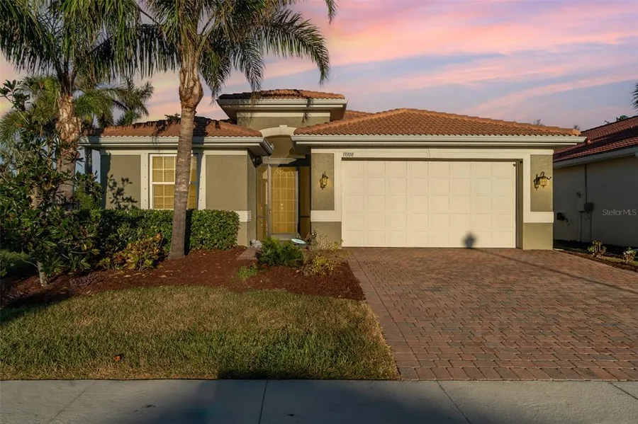 Under contract-accepting backup offers. DID SOMEONE SAY LOCATION!!!! Why, yes I did! This 3-bedroom, 2-bathroom home in the highly sought-after Caribbean Village is the next chapter you have been waiting for. A brand new 12' wall has been approved and is scheduled to built along "River Road" creating one of the most private, desirable, amazing locations in the community. This light, bright, and airy "move-in ready" home with a 2 car garage and a spacious den is better than new and is located in a maintenance-free community with a ridiculously low HOA and No CDD! Enjoy entertaining from your very own chef-inspired kitchen featuring granite countertops, stainless steel appliances, a walk-in pantry, ample cabinet space, and a large center island perfect for any occasion. The kitchen seamlessly opens to the Dinette area and Great Room, both of which flow out to the screened lanai through sliding doors, offering the perfect space to enjoy the serene Florida lifestyle. The split floor plan with the primary bedroom is a true retreat with walk-in closets for two and a luxurious en-suite bathroom, which includes a garden bath, large vanity with dual sinks, a private water closet, and a walk-in tile shower. Spacious guest rooms along with a full bathroom fill up the west wing of this timeless beauty. French doors open to your new office/flex room/playroom/whatever room. The home also features rain gutters, and a brick paver driveway. The paved rear lanai adds a welcoming touch as you relax with your favorite book. This home offers peace of mind with a tile roof and provides ample space for a pool or patio extension. The gated community includes a heated pool, fitness center, and a picnic area. Take a short drive to some of Florida's most beautiful beaches. Venice has everything your heart desires. With easy access to I-75, you're also just a short drive from Sarasota, offering even more arts, culture, and entertainment options, including theater performances, museums, and live music venues. This home's prime location along with genuinely wonderful neighbors make it an awesome community! I can't wait for you to meet your new friends! It is easy to enjoy all the shopping, dining, fishing, and entertainment Venice and the surrounding areas provide! No flood zone! Call today for a private tour!