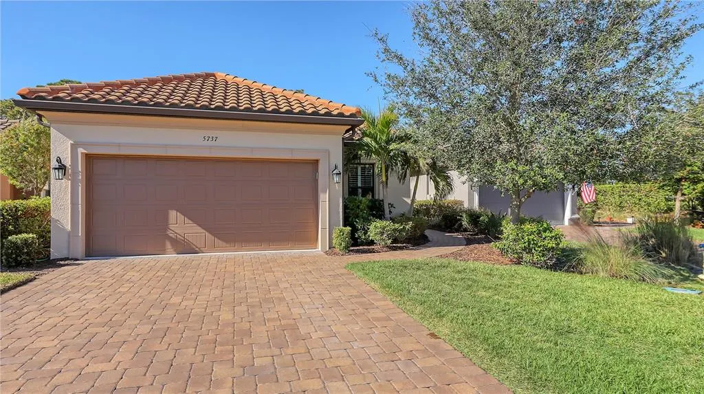One or more photo(s) has been virtually staged. Discover this charming 3-bedroom plus den Arezzo Model home, perfectly situated on a premier lot in the sought-after Bellacina by Esplanade community. Enjoy the ultimate in privacy with south-facing water views that create your very own tropical oasis. The heated pool and spa complete the experience, making every day feel like a vacation. The open layout is ideal for entertaining, and for cooking enthusiasts, this natural gas community is a dream. Additional features include elegant plantation shutters throughout, upgraded laundry room with an abundance of storage, reverse osmosis water filtration, master closet updated by Affordable Closets, clear span screens on pool cage, room darkening shades in master bedroom, and a Tesla charging station installed in the garage. Community Highlights: Upscale clubhouse with catering kitchen Fitness room overlooking the resort-style heated pool with cabanas Outdoor spa and firepit Pickleball courts, tennis court, and bocce ball court Cornhole station and playground Two dog parks Activities director to keep your social calendar full Additional Benefits: No CDD fees - a rare find! Lawn maintenance included in your HOA fees Gated access to the Sarasota County Legacy Trail Located just minutes from Nokomis Beach, Venice Beach, and Siesta Key Beach, this home is also close to shopping, restaurants and grocery stores. Don't miss this opportunity to live in one of the most vibrant communities in the area. Schedule your showing today and start enjoying the Florida lifestyle!