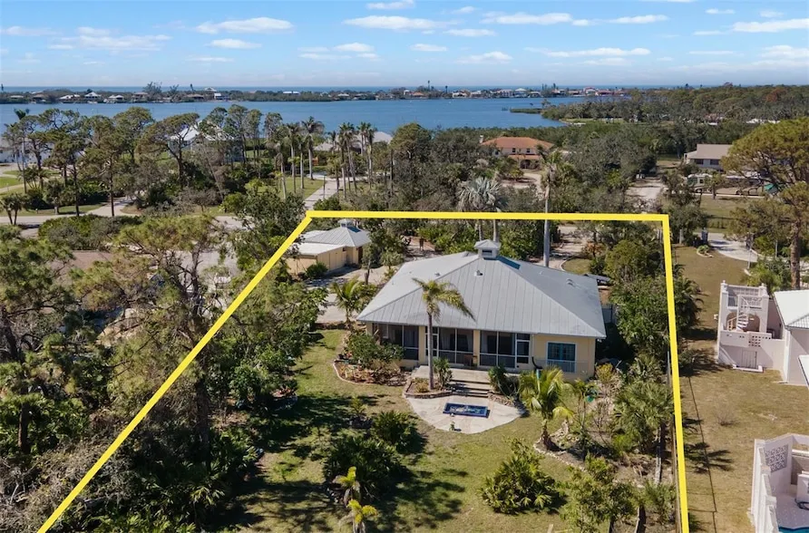 Welcome to this rare gem in Englewood Gardens, a stunning retreat set on OVER AN ACRE of lush, private land! This beautifully crafted home features a durable METAL ROOF, an open and split floor plan, and custom touches throughout. Enjoy the convenience of an ATTACHED GARAGE WITH A PRIVATE AIR-CONDITIONED STUDIO, plus a detached garage adjacent to an ADDITIONAL IN-LAW SUITE. Be sure to view the Custom Features Sheet for a full list of upgrades!***Relax on the spacious front porch overlooking your own habitat circle. Inside, you ll find soaring cathedral ceilings and LUXURY LAMINATE PERGO FLOORING throughout most of the home. The kitchen is a chef s dream with stainless steel appliances, imperial jade granite countertops, two pantries, and custom lazy Susan cabinets with pull-out drawers. Cook on the gas range, or switch to electric, as the home is wired for both. Meals can be served in the formal dining area or at the coffee bar.~~~The luxurious primary suite features French doors, a tray ceiling, and TWO WALK-IN CLOSETS. The en-suite bathroom boasts custom solid cypress wood doors, dual sinks with a built-in vanity topped with sea glass, a garden tub, and a walk-in shower with exquisite custom designs.***Guests will appreciate their own bedroom with a private entrance to the front porch and a convenient guest bathroom. Entertain outside on the screened lanai, accessible through three French doors. This spacious outdoor area includes pull-down shades and the soothing sounds of a fountain. Beyond the lanai is a large open yard perfect for all your outdoor activities.~~~THE IN-LAW SUITE offers an open-concept living, dining, and sleeping area with a bathroom and kitchenette, ideal for family or rental income. The detached garage provides ample storage, workshop space, or extra parking. The attached garage s air-conditioned private studio adds further flexibility for hobbies or creative pursuits.***Located just a few miles from Manasota Beach and historic Dearborn Street s shopping and dining options. This property is eligible to join the Englewood Gardens Beach Club, offering PRIVATE BEACH ACCESS, parking, clubhouse, picnic areas, and a kayak launch. Enjoy nearby Englewood Beach, Boca Grande, world-class fishing and boating, golf courses, and two Major League Baseball Spring Training stadiums. Call now to schedule a showing and make this tropical oasis your very own slice of paradise, before some else does!