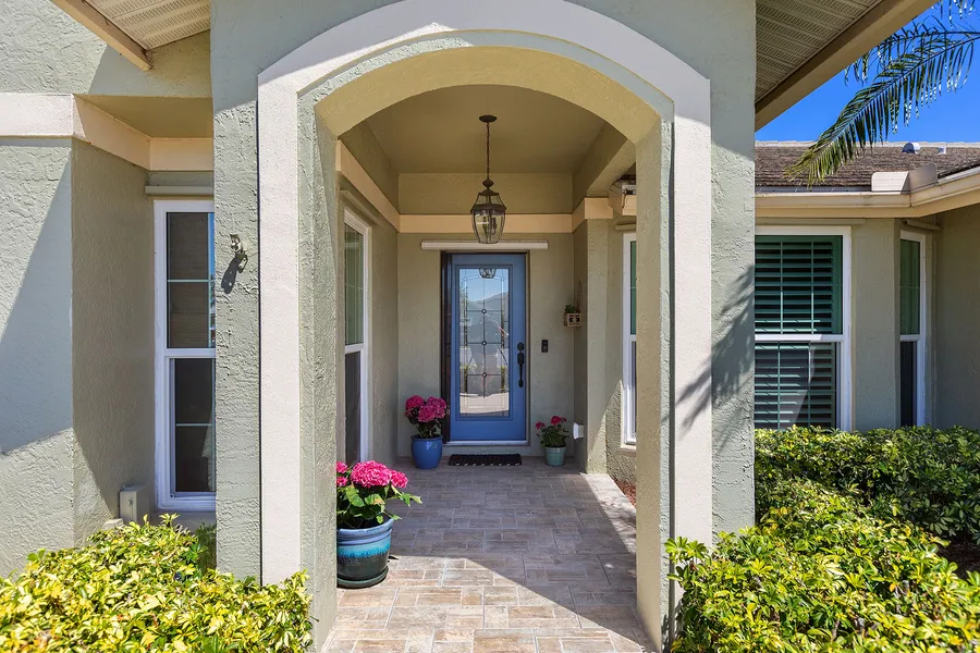 Cottage-like sparking pool home overlooking fairway in desirable Waterford Golf and Country Club. This 2,366-square-foot home has three bedrooms, two baths, office and boasts of pride of ownership, and is on a quiet cul-de-sac. Impact windows, doors, garage door and front door shutter. Newer tile roof, gutters and downspouts, four-ton air conditioner with surge protection in 2015, house re-piped, new water heater-2024, electric panel upgraded with new breakers and epoxy garage floor in 2025. The split floor plan has primary bedroom with slider to lanai and pool, large walk-in closet with custom cabinetry and ceramic tile flooring. The bath has dual vanities, stone flooring and walk-in shower. An office is adjacent to primary bedroom for easy access for remote work. The kitchen has custom cabinetry with some glass doors, stainless steel appliances, granite counters and center island. The adjacent family room is comfortable and bright for causal living with slider to lanai and beautiful pool that was resurfaced, new pavers and pool cage replaced in 2023. The family room and dining room have fine plantation shutters. The yard has fabulous landscaping and plantings to make this home a great place for Florida casual living. A walk through this home brings the Florida lifestyle to a new level. Call for an appointment to see for yourself!