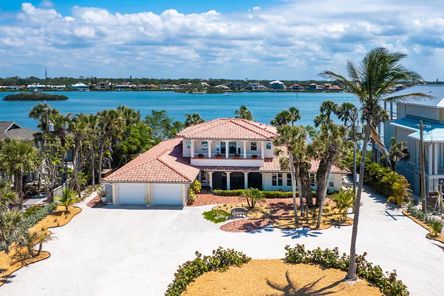 This captivating Gulf-to-Bay residence ideally embodies timeless coastal style. Start your mornings on the lanai with coffee in hand as the sun rises over the Intracoastal Waterway. Launch your boat from the bayside dock, then spend your afternoons on your private beach, where breathtaking Gulf sunsets are practically a nightly guarantee. Inside, you'll find expansive, light-filled rooms offering spectacular water views at every turn. The main living room boasts bayside and beachfront vistas, while the beachside family room and spacious guest bedrooms comfortably accommodate king-sized beds. The kitchen is a gathering space, featuring abundant beverage and wine refrigeration, ideal for entertaining. Upstairs, the entire second floor is dedicated to the luxurious primary suite, complete with panoramic Gulf and bay views from a private beachside balcony and bayside deck. The en-suite bath ...