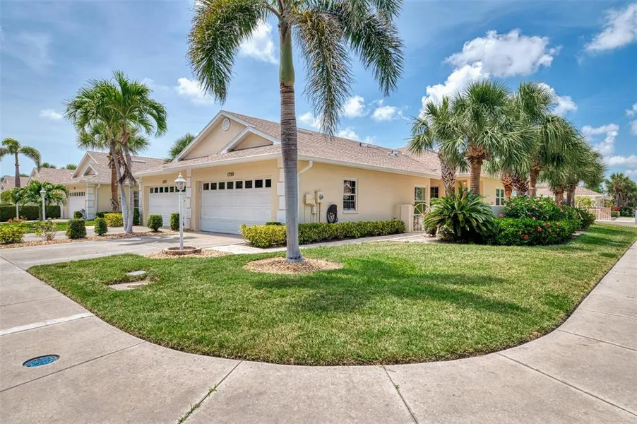 Attractive two bedroom, plus den, two bath, attached villa in the desirable Fountain View community. The floor plan features a combination living room and dining area with a slider out of your living room to the lanai. Beautiful brick paver courtyard to the entrance of your home. The kitchen has been remodeled recently and features Quartz counter tops, wood cabinets with soft-close doors and drawers and stainless appliances. There are two hallway pantries and your laundry room has extra storage space too. The master bedroom has a walk-in closet and shower only. There are plantation shutters on all the windows and slider. All the windows and slider were replaced in 2017 to impact, storm rated, glass. The AC system was replaced in 2020. The roof was replaced in 2021. The home has been well taken care of and is move-in ready! The community offers a heated pool and clubhouse. You are within four miles to downtown Venice and the beautiful Gulf of America. Come see this great buy today!