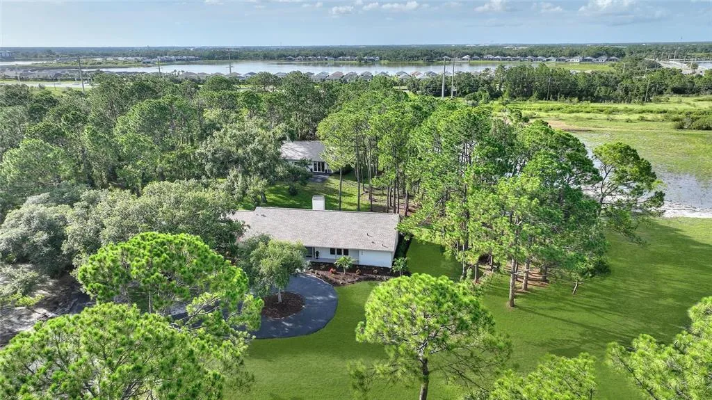 TWO HOMES ON ONE 6.5 ACRE LOT- Convenient Country Living Meets Refined Comfort in Pine Valley! Discover your private retreat in the exclusive Pine Valley community, where over 6.5 acres of natural park-like serenity awaits at the end of a quiet cul-de-sac. Surrounded by mature trees and tranquil views, this estate features a peaceful pond, fire pit, and expansive outdoor space ideal for entertaining, relaxing, or creating the lifestyle you've always dreamed of. This rare property includes two fully remodeled residences totaling over 5,000 sqft, both with brand-new roofs and extensive upgrades throughout. The main residence boasts 4 spacious bedrooms, 2 completely renovated bathrooms, and a brand new gourmet eat-in kitchen with quartz countertops, a large island that seats four, brand new designer appliances by Caf, and brand new custom cabinetry. The open-concept layout seamlessly connects to a cozy family room with a wood-burning fireplace, plus formal living and dining areas-perfect for gatherings. Enjoy all-new luxury vinyl plank (LVP) flooring, a brand-new A/C system, a brand-new tankless water heater, and a full interior renovation throughout. The attached 2-car garage and dedicated laundry room-complete with a brand new washer and dryer-add everyday convenience. Step onto the newly screened-in back porch for morning coffee, outdoor dining, or peaceful evenings under the stars. The guest house/in-law suite offers nearly 1,000 sq ft of beautifully updated space, complete with 1 bedroom, 1 full bathroom, a brand new full kitchen with brand new appliances, and brand new LVP flooring-ideal for extended family, guests, or rental income. For hobbyists or car collectors, the detached 6-car garage and workshop is a dream come true, featuring brand new epoxy flooring and plenty of space to pursue your passions. This in-laws' quarters is equipped with hurricane-rated windows and thoughtful upgrades throughout. Just minutes from a Publix grocery store, Cooper's Hawk restaurant, or Big Top Brewery, Lakewood Ranch, top-rated schools, fine dining, entertainment, Gulf Coast beaches, and I-75, it offers the best of both peaceful rural charm and modern convenience. Whether you're seeking a multi-generational property, private compound, or car enthusiast's paradise, this one-of-a-kind estate checks every box!