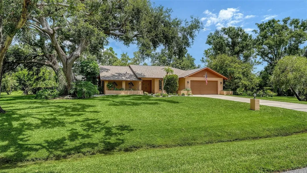 Under contract-accepting backup offers. Opportunity awaits in this well-maintained three-bedroom, two-bath pool home on over one acre in Sarasota’s tranquil and bucolic Ravenwood community. This property offers timeless appeal, ample space, and a major upgrade, a new roof installed in 2025. This home also boasts an effective year built of 2002. With over 2,000 square feet of single-level living, just minutes from restaurants, shopping, and medical facilities, this home features split plan bedrooms, cathedral ceilings, tile floors, a formal dining room, and a bonus room which is an office/den off the spacious foyer with sliding doors leading to the screened lanai. The updated kitchen includes granite countertops, a breakfast bar, a pass-through window to the lanai, and opens to a spacious living/great room with a cozy wood-burning fireplace. Enjoy seamless indoor-outdoor living with a la...