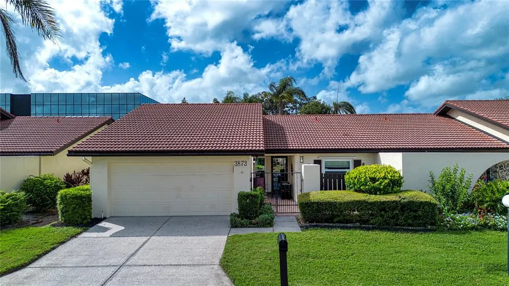 Wow. Don't miss this stylish, serene villa in Sarasota's 55+ Village Plaza. Every upgrade is a welcome one - gorgeous oak flooring, updated windows, hurricane shutters, handsome built in storage, bright sun room and a spectacular kitchen your friends will envy! The living / dining room area is open and inviting with light from the sun room windows to bring the outside in. The primary suite is a real stand out, with beautifully upgraded walk in closet and ensuite bath perfect for aging in place. The split floor plan provides a private 2nd bedroom that is both office (generous built ins) but also contains a queen size Murphy bed to house your guests. Guest bath is updated with walk in shower. The relaxing sun room is ideal for music or reading but once you see the kitchen you'll understand what 'stand out' means. From the sunny window seat and breakfast table to the 24' of continuous cabinetry, stone counters and modern appliances you'll be jumping for joy to picture the fun times ahead. Additional storage solutions greet you on the way to the full size laundry room and well outfitted 2 car garage. The community is active, friendly and chock full of amenities to help you stay fit and have fun. Village Plaza is just around the corner from Publix, Walgreens, banks, medical facilities; 2 golf courses within 1.5 miles and just 15 minutes to downtown Sarasota. Don't miss this opportunity to start your new life in this very special home. The home's furnishings are available or will be removed to suit the buyer.