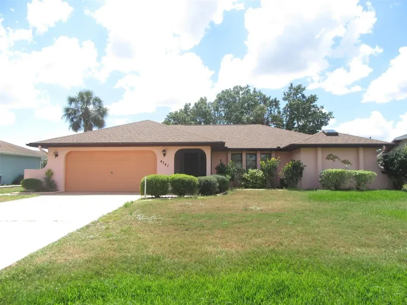 Delightful 3-bedroom, 2-bath home on City Water offers a spacious split bedroom floorplan with laminate and tile flooring throughout. Screened in front entrance welcomes you as you enter the bright open floor plan with vaulted ceilings. The light, airy kitchen with a pantry closet, breakfast bar, and ceiling fan is situated in the heart of the home and is perfect for hosting gatherings! Large lanai provides additional living area where you can enjoy the seamless living space by opening the sliders in the dining room & family room. Master suite offers a spacious bedroom area, ceiling fan, walk-in closet with private access to lanai. En Suite delivers a skylight, double-sink vanity, garden tub, with a separate walk-in tiled shower. The split floor plan has the guest bathroom with a skylight and two generous bedrooms, both with walk-in closets. Washer/Dryer included along with a shed for ad...
