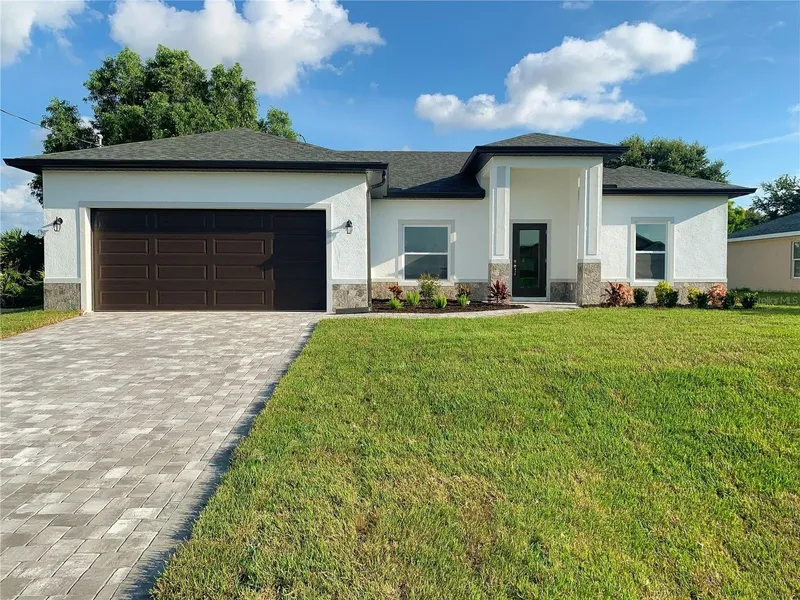 NEW CONSTRUCTION - MOVE IN READY!! Beautiful split floor plan with Impact windows and doors. Includes full 1-year warranty and 10-year structural warranty! Prime location right next to Blue Ridge Park and a peaceful backyard view of nature. Open layout, high tray ceilings, and elegant Porcelain Tiles throughout. The spacious kitchen is equipped with 42" upper cabinets, a pantry closet, and premium granite countertops. The bright living area opens to a generous covered lanai. The Master features TWO walk-in closets and a gorgeous bathroom. Additional features: Decorative impact glass front door, extra linen closets, high-efficiency AC system, Moen shower valves, and dimensional roof shingles. Great outdoor area with upgraded Landscaping and Irrigation system. The front is tastefully finished with natural looking Stones and Brick Paver driveway. Images may be from similar homes. Great oppo...