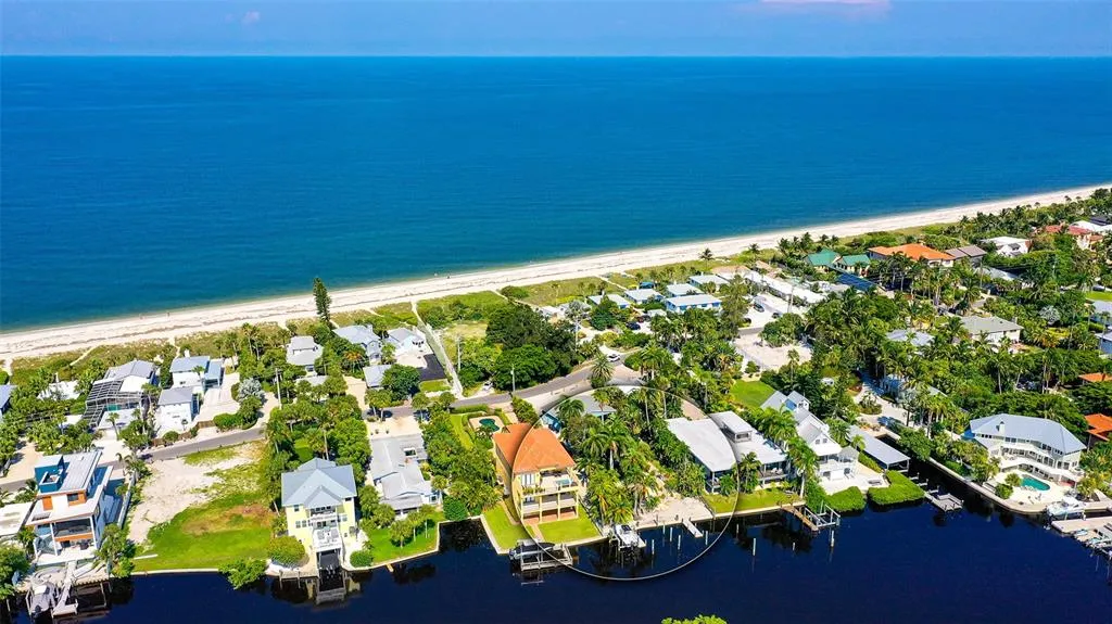 MAJOR PRICE REDUCTION Location is everything! Beautiful, tropical lot with over 1/3 of an acre on the Intracoastal and private beach access that includes a 1,195 sq ft cottage. The property has 4 deep-water boat slips (one with an electric lift) and a sea wall that were all updated in 2016/2017. All slips are equipped with electric and fresh water. The 2/2 + den cottage is situated in the front part of the property with plenty of parking available. Cottage can be demolished and allow for full use of the 16,621 sq ft of land. What makes this property special is the natural, self-sustained matured landscaping that is complemented with a gazebo facing the Intracoastal waterway. The deeded beach easement is private and just a short walk across the street at one of the widest beaches on Casey Key. In addition, Casey Key is the largest sea turtle nesting island in Sarasota County. The location is ideal with only a few minutes by boat to the Venice Inlet, easy access out to the Gulf of Mexico and even walking distance to a couple of popular restaurants. The property sustained no damage from the recent hurricanes.