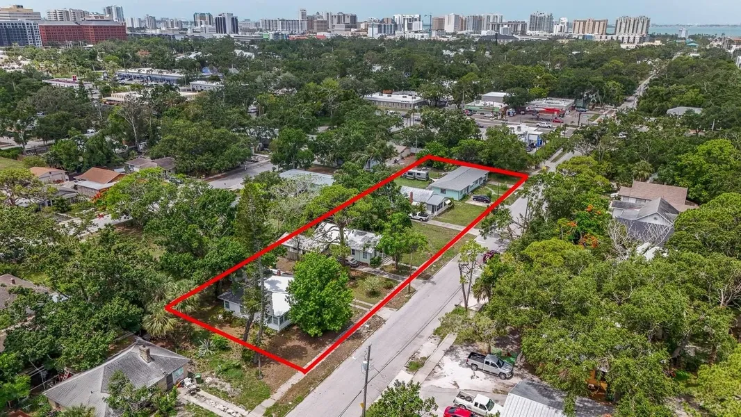 This centrally located, five-parcel assemblage in Sarasota’s Park East neighborhood offers a rare redevelopment opportunity in an area experiencing ongoing growth. Totaling approximately 35,000 square feet (350 road frontage x 100) deep or (0.80 acres), the site currently includes five income-producing rental units bringing in a total of $8,250 per month. The property is also situated within an Opportunity Zone. Zoning allows for mixed-use development with ground-floor commercial and multifamily residential uses as well as hotel developments with ground-floor commercial. The property supports a base density of 25 units per acre, with the potential to achieve up to 100 units per acre through participation in the City of Sarasota’s Attainable Housing Density Bonus Program. Building heights of up to four stories are permitted under current zoning. The property is strategically located near downtown Sarasota, US-301, Fruitville Road, and I-75, offering convenient access to local employers, retail corridors, and regional transportation. Nearby recreational and cultural amenities include Bayfront Park, Payne Park, Gillespie Park, and the Rosemary District. Rental income provides holding revenue while entitlements and development planning are pursued. Buyer is responsible for verifying all zoning regulations, density bonuses, and development entitlements with the City of Sarasota.