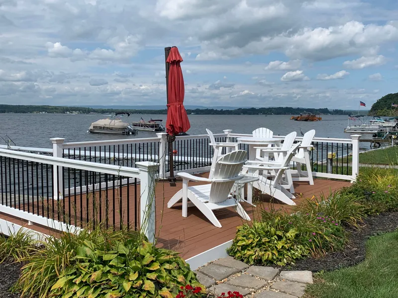 Lake views, shared deeded dock and waterfront rights, garage and three levels of living in this contemporary home with views in every direction. Comfort, space, a walk out lower level with bathroom, deck, yard, first floor primary suite, freshly painted and ready for you! A lakefront paradise with 3 bedrooms, 3.5 baths, beautifully accentuated and charmingly modern with gorgeous hardwood flooring throughout. An open concept floor plan allows you to entertain with ease and enjoy the breathtaking views of Saratoga Lake. First level bar and entertainment room, leads up to the main level with a stunning primary suite and laundry room, your guests will enjoy privacy on the third level with 2 bedrooms and private bath. The 18x39 garage affords plenty of space.