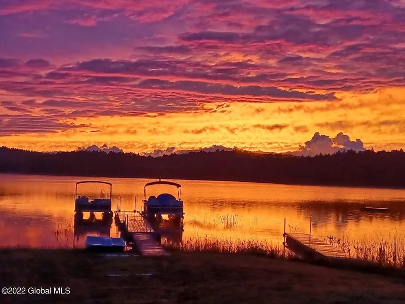 Can't ask for a better location! Bring your boat & enjoy lake life on private Hunt Lake. This Adirondack home is situated on 3.15 acres & comes w a Guest cottage. Enjoy the main house w its spacious great room that has a gorgeous stone fireplace. Large enclosed, glass front porch overlooks the breathtaking lake & sunset views. Enjoy 20 ft of private waterfront w private dock included. Also included is a paddle boat for your enjoyment & shed for storage needs. Large backyard has 2 sheds & a carport for your boat. Plenty of parking in the circular driveway.Separate guest cottage has its own utilities & a beautiful stone fireplace.Both can come complete w furnishings. Has been loved by the same family for over 50 years, dont miss out! call today for a private showing.