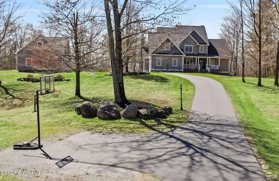 Stylish and sophisticated, this stunning oasis offers 8.49 acres of pure luxury living. This exquisite 4BR, 4.5 BA home on breathtaking grounds, provides a private and secluded retreat, perfect for those seeking tranquility and privacy. Open floorplan blends modern aesthetics with functional elegance. An entertainer's dream, the spacious layout offers ample room for hosting gatherings and events, indoors and outdoors. Superior finishes, designer lighting, furnishings, window treatments and upscale amenities, this home is like no other. Crestron Home Automation System offers complete Smart Home control remotely or from the dedicated panels. Fin bsmt w/rec area, home theater, 3 gas fireplaces, radiant heat, generator, firepit, add'l garage, the list goes on! 11 mins to Bway; Don't wait!