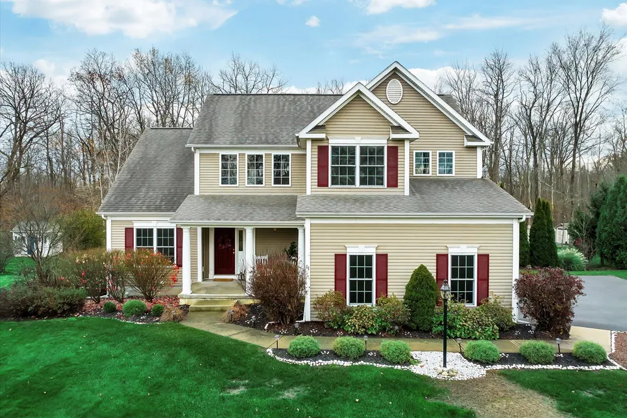 Beautifully crafted by Traditional Builders, this stunning Colonial in the desirable Chapel Hill neighborhood offers an exceptional blend of luxury and functionality. Enter through a grand two-story foyer that opens to an impressive great room with soaring 18-foot ceilings, abundant natural light, and a cozy gas fireplace—ideal for gatherings or quiet relaxation. The first-floor primary suite features a spacious bathroom and walk-in closet, providing convenience and comfort.