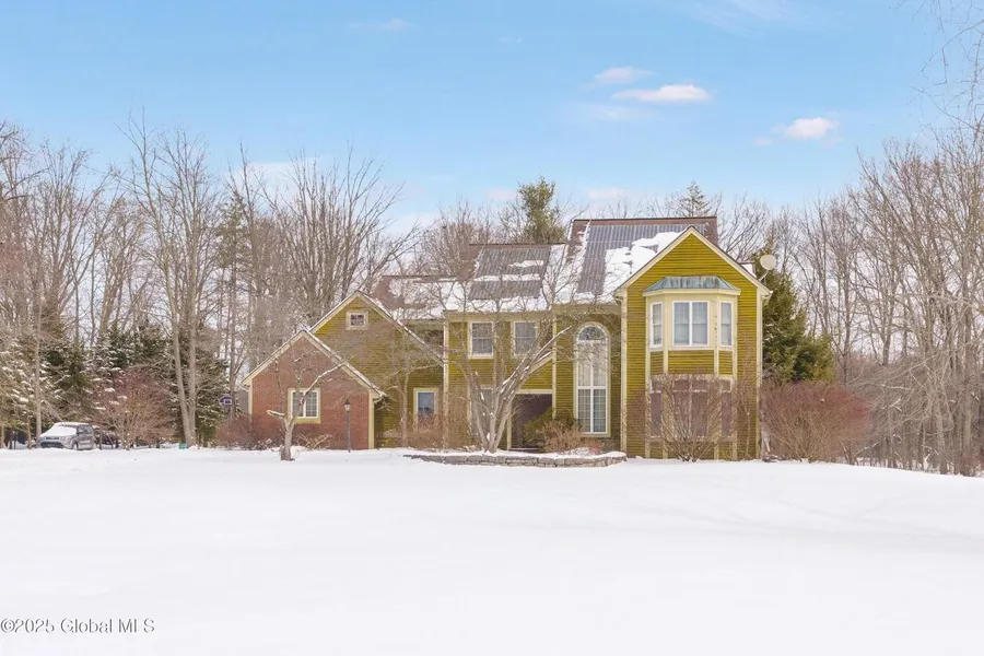 Custom executive home, originally built and owned by a co-owner of the Michaels Group. This exceptional residence features a grand two-story great room, a convenient wet bar, and a bright breakfast nook. The first-floor office/den offers flexibility and could be used as an additional bedroom. The spacious primary suite provides a private retreat, while the three-car garage offers ample storage. A screened in porch and spacious deck highlights the rear wooded views. Nestled on a serene, beautiful cul-de-sac, this home sits on over 2 acres and has been powered by solar energy since 2013. With just a few personal touches and updates, this remarkable home can become your perfect sanctuary.