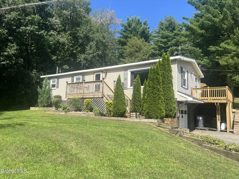 Country living on 5.64 acres, minutes from Saratoga Lake and Track. Spacious Living Room, Dining and Kitchen, Oak Cabinet Kitchen with Stainless Steel Appliances. Hardwood floors thru-out. Currently set up as a 2 bedroom with good size primary bedroom, but lower level family room was previously used as 3rd bedroom. Large rebuilt Rear Deck overlooks beautiful back yard and acreage. Outbuildings include Newer type Barn with electric opens on both sides is great for storage or animals. 2 Car Carport for trucks or toys. Many updates (See Update list in Docs); Trails thru property for hiking/ATV/Snowmobiles plus Tree stand set up for hunting (see mini videos), Home is plumbed for A/C but units removed. Wired for backup Generator and Welder. Owner regularly used woodstove for heating.