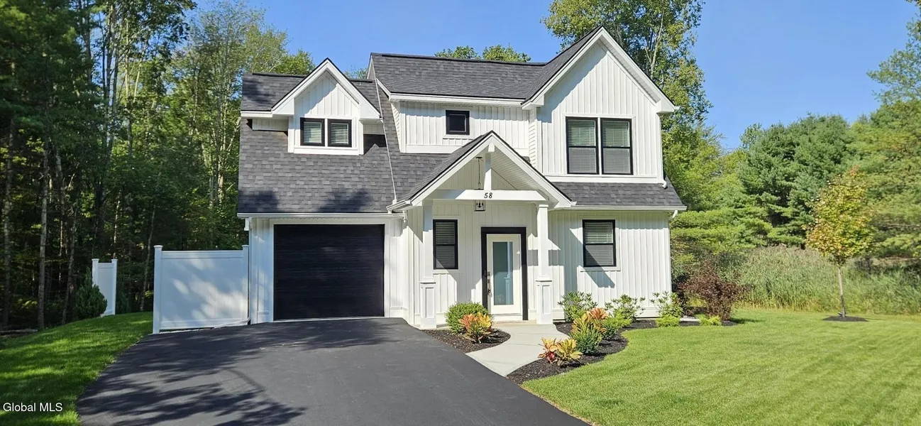 Brand New modern farmhouse, blends classic charm and luxury, just minutes from downtown Saratoga Springs. Looking for an alternative to a condo with your own private garage and parking spaces ? This home thoughtfully designed and meticulously finished with a stylish open concept, light filled living spaces, stunning floors, modern lighting, custom fireplace with top of the line finishes throughout. The kitchen has a spacious peninsula and beautiful granite countertops. Upstairs find two bedrooms two bathrooms including a large primary with vaulted ceilings, walk in closet and a gorgeous ensuite dual vanity bath. Professionally landscaped yard with lawn sprinklers,a private patio, perfect for summer evenings and entertaining. This home offers the perfect blend of urban convenience and countryside tranquilty for anyone looking to enjoy city access, two miles from shopping without sacrifici...