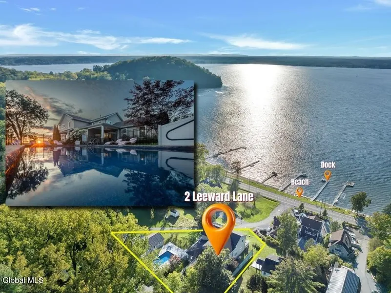 Sartoga Lake: Turn-key AirBNB rental sold fully furnished with bookings through 2025 & 2026! This home has ALL the amenities and bells & whistles; A corner lot, dock, sandy beach, panoramic sunset lake views, & 80 ft of accessible lakefront! House amenities include a wrap-around deck, screened room, 1st floor primary suite, Central air, granite countertop kitchen, pantry, heated saltwater pool, poolhouse with full bath, 2nd story clerestory windows, and finished basement! Perched on a hilltop overlooking the lake, this exceptional home offers luxury & location. Located on the same road, 11 minutes from the historic Saratoga Race track & 8 minutes to Saratoga National Golf Club, this property boasts stunning sunset views that happen every day directly in front of the home over Saratoga Lake. Every aspect of this home has been designed to maximize the lake view. Whether on the deck, loungi...
