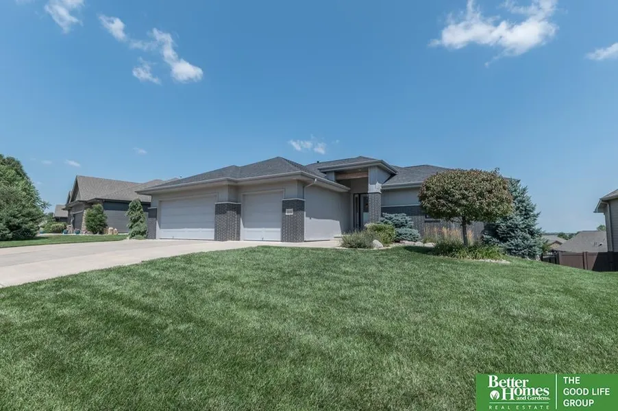 Built in 2014, this stunning ranch-style home built by Oakhaven Homes, offers the perfect blend of modern comfort and classic charm. The home features four generously sized bedrooms and three luxurious bathrooms, ensuring ample space for family living and guests alike. Upon entering, you're greeted by an open-concept living area bathed in natural light, with high ceilings and elegant finishes. The gourmet kitchen boasts granite countertops, stainless steel appliances, and a large island perfect for entertaining. The living room has a fireplace that creates an inviting atmosphere for gatherings. The primary suite is a serene retreat, complete with a spa-like bathroom with dual vanities, large shower and huge walk-in closet that conveniently connects to the laundry room. On the other side of the living room is another bedroom and full bathroom. Full finished basement with wetbar, 2 bedrooms and bathroom. New roof July 2024.