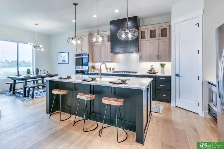 This Papillion ranch home is the epitome of modern comfort and natural beauty, every corner feels bright, open and airy. On the main level, you will find engineered hardwood floors throughout. The kitchen features slab quartz countertops & backsplash, soft close cabinets, a gas range, stainless steel appliances, walk-in pantry & a large island for friends & family to gather around. The living room includes a beautiful gas fireplace & has not only one, but two sliding glass patio doors, one being a unique, French sliding glass door. Work from home? Check out the dreamiest in-home office with a generous amount of storage space! The large primary suite holds a beautiful bay window, luxury bathroom & walk-in closet. Huge, fully finished basement with gorgeous wet bar/kitchenette, 2 spacious bedrooms and 3/4 bath.