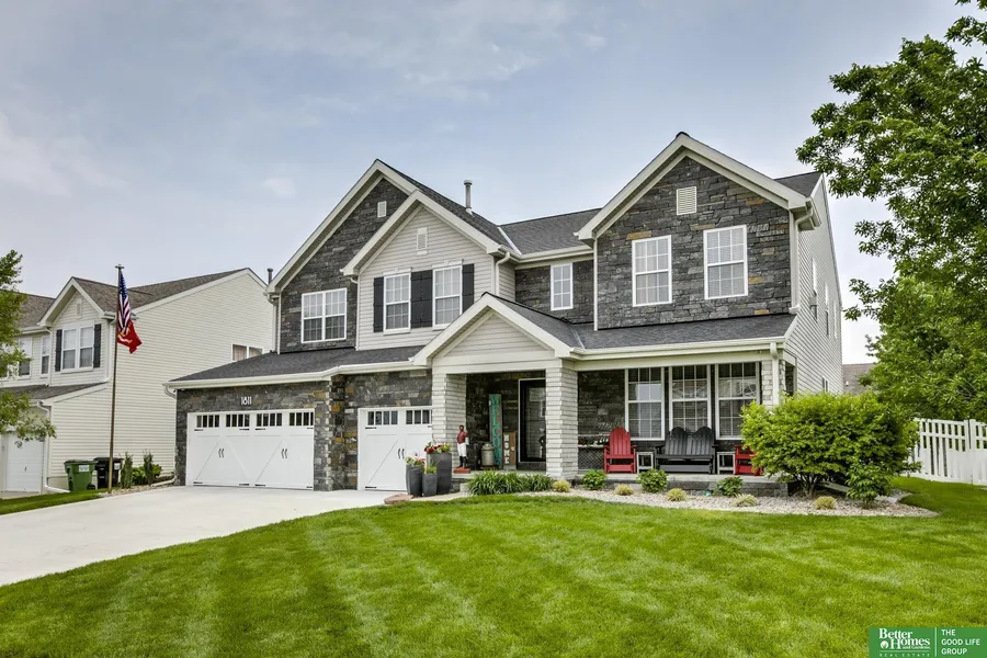A one of a kind 5-bedroom (sixth non conforming) two story home was featured on HGTV House Hunters and James Charles' Designer at Home. From the moment you arrive, you'll notice the custom exterior with natural stone and professional landscaping by Lanoha and Jensen Gardens. Inside, enjoy an open floor plan, a rare bedroom on the main floor, solid hardwood flooring and modern finishes throughout. The real showstopper is the 48,000' gallon backyard pool, complete with diving boulders, a tanning ledge, LED lights, deck fountains, a heater, and a new salt system, liner, jets, and returns, all updated in 2024. Perfect for entertaining or relaxing in your private retreat. Located in a sought-after Papillion neighborhood, this home offers luxury, comfort, and unforgettable outdoor living. Don't miss your chance to own a one-of-a-kind property!