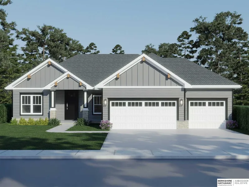 John Gell, M: 402-740-4885, , - Sherwood Homes' new Allen Park Ranch plan. Beautiful front elevation with large porch and modern farmhouse accents. Very open concept with LVP flooring in much of the main floor. Huge hidden walk-in pantry in kitchen. Custom cabinetry built specifically for this house by Sherwood's cabinet shop. Quartz and/or Granite counters throughout. Secluded primary suite with tiled walk-in shower and handy access to the laundry room. Drop zone at the entrance from the 3-car garage to help keep clutter in check. Storage galore with ample linen closets and generous Primary suite closet. All the latest finishes done in the most popular palette. Price includes first year ProHome comprehensive warranty plus an additional 2/10 warranty, including transferable 10-year structural warranty!