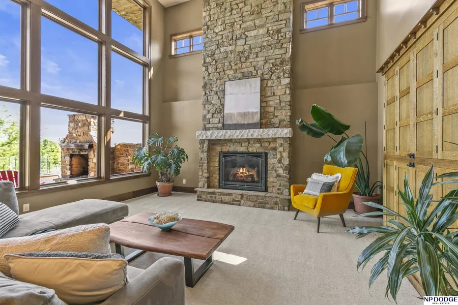 Michelle Sodoro, M: 402-612-2074, , - One of a kind 3 car garage home of nearly 5,000 finished SF w/ spectacular views of Lakewood Villages! 1.5 story Craftsman offers custom quarter-sawn oak cabinetry & built-ins throughout w/ hickory, porcelain & marble flooring. Gourmet kitchen w/ granite counters, pantry & a large dining/living area. Main level offers 2 bedrooms & 2 full baths, w/ Primary Suite walking out to a hot tub on a private deck. Kitchen overlooks a 2-story Great Room w/ an impressive wall of windows, floor-to-ceiling stone fireplace, 2nd kitchen, theatre room, wine cellar, ½ bath, & workshop/storage. Walk-out to a covered brick patio w/ built-in grill, fridge, pizza oven, bar, fireplace, playset, & garden w/ fruit producing trees. 2 generous sized ensuite bedrooms w/ walk-in closets, loft & rec room/office add additional function to the second floor. Unique features you can only find in this home.