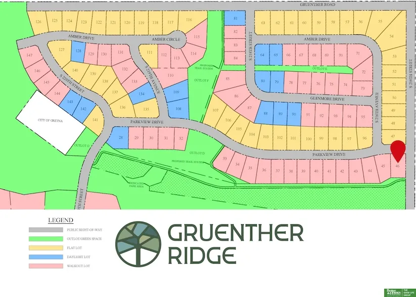 Build your dream home! Gruenther Ridge development is off the beaten path, west of Gretna. This walkout lot is a Non-Builder attached lot that backs up to green space. Don't miss your opportunity to enjoy the space this lot and development has to offer.