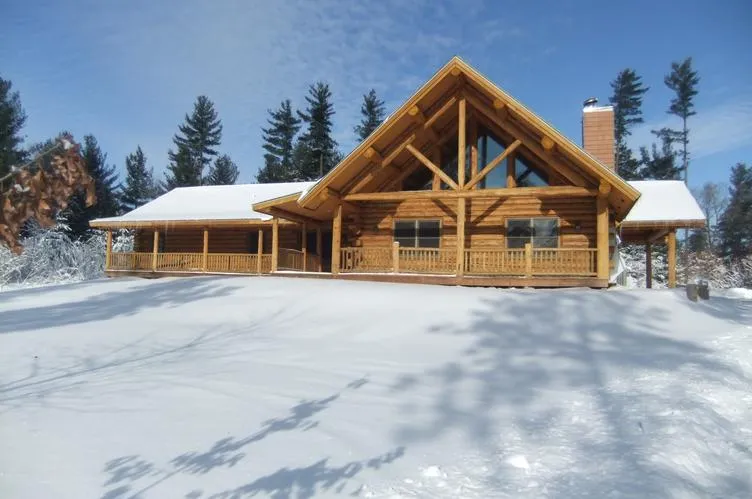 R-4630 New Log Home In The Woods: 4 bedroom 3 bath full log home on 50 acres featuring full basement, large great room, front and rear open porches, wood burning fireplace in living area, hardwood floors, hickory cabinetry, central air, and loft area finished into a family room. All located on 50 wooded acres within commuting distance to Madison. Priced far below assessed value. Home needs some finishing to be complete.