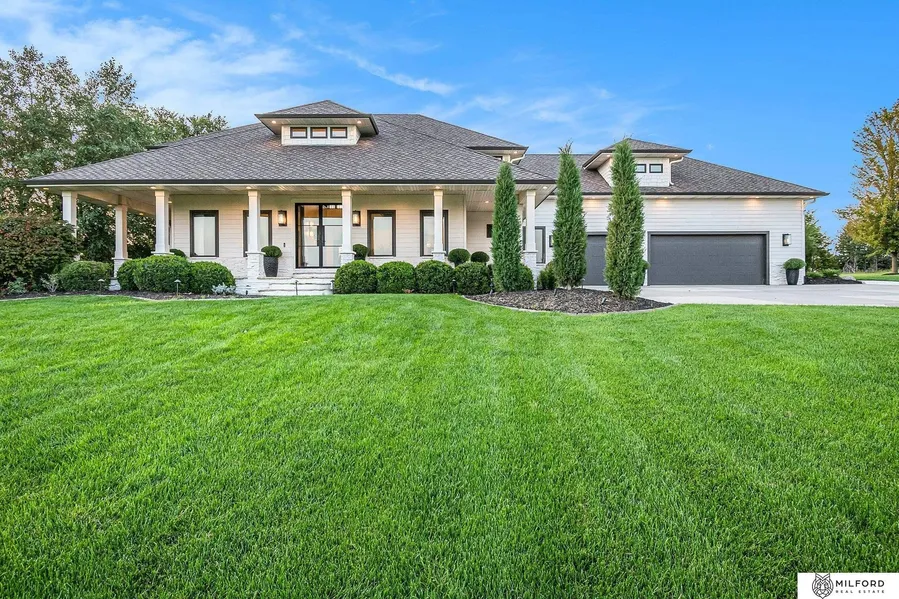 Tony Terp, M: 402-301-1658, , - This breathtaking estate redefines retreat-style living. Spanning nearly 6,000 sq ft on 3.82 acres, this 5-bedroom + loft, 6-bathroom, 7-car garage masterpiece blends sophistication, comfort, and privacy. Inside, soaring ceilings and walls of windows showcase sunlit living spaces, a chef’s kitchen with premium finishes and oversized island, and multiple gathering areas perfect for entertaining or quiet evenings at home. The luxurious primary suite offers a spa-like bath and serene views of your private oasis. Outside to a backyard sanctuary designed to feel like your own resort. A sparkling pool glistens beneath open skies, surrounded by patios, shaded lounging spaces, and a custom outdoor grilling kitchen that makes entertaining effortless. Gather around the fire pit as evenings with sunsets paint the horizon in rich hues of gold, pink, and violet, creating nightly million-dollar views you’ll never tire of. And th