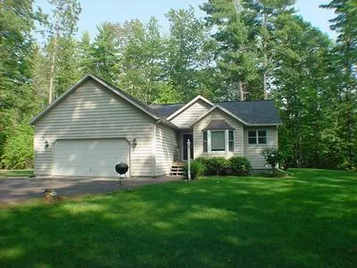 Very well maintained 1700+ square foot home south of Hayward near Lac Courte Oreilles and Grindstone Lakes and the boat landings. Home has 3 bedrooms and 2 full baths. Living room features a corner gas log fireplace and opens to a large deck across the entire rear of the house. Full basement has 10’ walls and is ready to finish for possible added living space. Kitchen has beautiful, spacious cupboards and includes the appliances. Attached garage plus a huge 30’ x 40’ pole barn. The parcel has 5+ wooded acres with large pine trees.