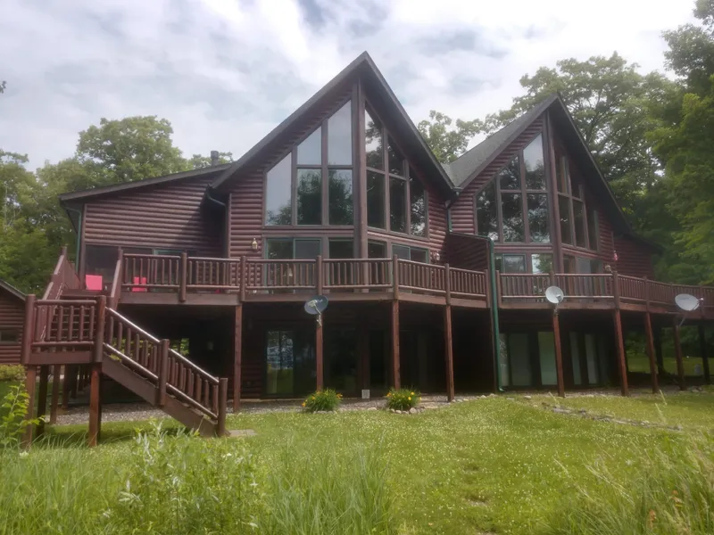 Beautiful chalet condo on Round Lake! This spacious 3 bed/3 bath lake home is perfect for your family gatherings. The open concept floor plan, lake views from the chalet windows, screen porch, gas log fireplaces, wrap-around deck, log siding and railings all speak Northwoods. Reserved dock space just a short walk from the cabin to enjoy the crystal clear waters of Round Lake. Two-car detached garage. Spend your time enjoying all this condo has to offer and let the association do the work. Cabin has been meticulously maintained and can be sold turn-key to the right buyer.