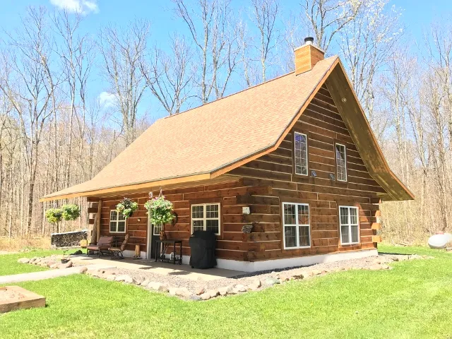 Beautiful custom built log home on 2.9 acres.2 bed 1 bath home features wood fireplace,main floor bedroom and laundry room. Built from White pine harvested in Ontario WI and cut by the Amish, a few spruce pieces added for character.Kitchen with lighting above and below the cabinets.In floor heat & acid stained concrete throughout lower level.Upper level is master bedroom with closet plumbed for full bathroom.Located near Winter Lake boat landing, public hunting and on ATV and Snowmobile trail.