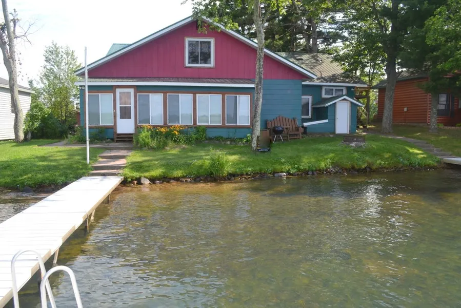 Large family retreat on the waters edge of Round Lake! 4 BR on main level & 2 bedrooms on upper level, 5 BA, large living room & family room, 2 fireplaces for entertaining on cool evenings, knotty pine interior, open kitchen with center island, 3 season room & plenty of storage area. Includes dock space, garage space & common area. Located on popular Round Lake known for great fishing & watersports. Close to many restaurants, trails, & Hayward.
